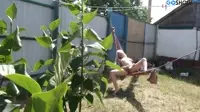 The video begins with a stunning, blonde woman sunbathing in her hammock outside, surrounded by the lush, green trees and vibrant, summery colors of her backyard.With a captivating, alluring air, she feels the cool breeze on her skin and the warm sunlight kissing her flawless complexion.This scorching, sunny day is just perfect for a solo session of masturbation as her hands instinctively glide across her toned body, exploring each curve and dip.The blonde woman slides her hand between her legs, feeling the wetness between them as her cunt yearns to be touched by her own hands.With eager anticipation, she rubs her clit in wide circular motions, building up excitement that flows through her veins like molten lava, making her feel alive and wanton at the same time.She lets out a soft, intimate moan as the pleasure starts to take over her body, making her shiver from head to toe.As the sun begins to set, painting the sky with hues of orange, pink, and purple, the blonde woman increases her stimulation, diving her fingers deeper into her wet pussy.She feels an intense urge to cum, her body aches for release as her juices flow freely down her thighs, mixing with the dew drops left behind by the evening rain.With each thrust of her hand, she imagines herself being touched and pleased by another, bringing forth a mix of frustration and satisfaction.Breathing heavily, she clenches her teeth and lets out an animalistic growl, signaling that her climax is near.Her body tenses up, waves of pleasure rushing over her like a tidal wave, her blonde hair tangled in the wind as she reaches the peak of her orgasm.The womans moans become louder, her cries echoing through the serene backyard, drowning out the sounds of nature around her as she finally succumbs to the ecstasy she so desperately desired.As the orgasm subsides, the blonde woman takes a deep breath, feeling the afterglow of the sexual experience that was just unfolded in the privacy of her hammock.She slowly withdraws her fingers from between her legs and admires the mess left behind by their exploration, her eyes glazing over with contentment and desire for more.And so ends the days adventure in this womans backyard paradise, where outdoor masturbation in a hammock became an unforgettable experience, leaving her blonde and wild, yearning to unleash her carnal desires once more.