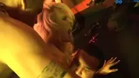 In the heat of the moment, the brunette and blonde duo were the center of attention, surrounded by an eager gang of men waiting to get their share of pleasure with these two insatiable females.The scene was set in a dimly lit room filled with passion and lust as the women started to undress, leaving not a single piece of clothing on their flawlessly toned bodies.Their piercing eyes looked deep into each other's souls, knowing they were about to embark on an unforgettable journey filled with raw, carnal desire.As the room slowly became alive with energy, the guys took turns getting close to these stunning women, eagerly reaching for their supple skin, exploring the contours of their bodies as if it was a treasure map that would guide them towards heaven.The men started fingering and licking at every possible spot, making sure both the blonde and brunette would not be able to withstand this whirlwind of pleasure much longer.Their moans reverberated through the room like wild beasts in heat, inciting the others to join in on their pleasure.Soon enough, it became a cacophony of moans, groans, and the sound of flesh smacking against flesh.The women continued to dominate the scene, directing the men with precision as they enjoyed themselves, guiding them towards the ultimate release they sought.Their strong, confident voices echoed through the room like a siren's call, beckoning each man to reach the pinnacle of pleasure.As their satisfaction levels increased, it became clear that everyone was close to reaching the edge.One guy took his chance to penetrate the brunette, pushing himself in as far as he could go while she continued to deepthroat another man eagerly awaiting her touch.Her mouth worked overtime as she used every trick in her arsenal, aiming for a powerful release that would have the entire room quivering with desire.The moment of truth was fast approaching.The blonde reached her breaking point first, her body exploding in a magnificent display of ecstasy.Waves of euphoria washed over her as she clenched every muscle within her reach, her cunt flooded with a torrent of cumshot that painted the brunette's face.The room's atmosphere was filled with tension as the climax neared its peak.Sensing it was her time to shine, the brunette took command once more, orchestrating her own momentous release.With the two guys by her side, they reached their limits and pushed their way over the edge simultaneously.Their cumshots splattered onto the blonde's face like a scene from an erotic fantasy, the air filling with the sound of sperm, cums, and orgasms.As they caught their breath and let the satisfaction settle in, everyone knew that this was one memory that would last a lifetime.